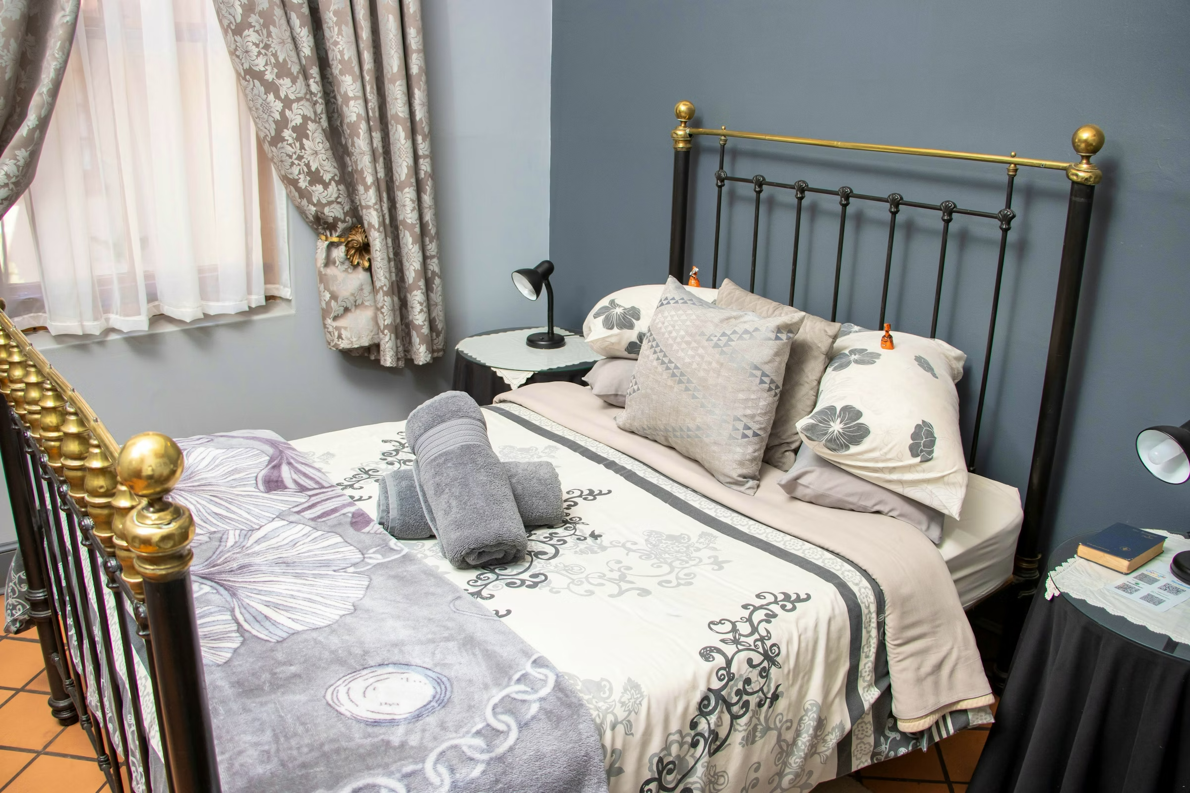 The guest house features 14 stylish en-suite rooms, furnished with either double or twin beds. Each room is equipped with a television offering selected DStv channels, a fan and heater, a bar fridge, and tea- and coffee-making facilities. All rooms are non-smoking, with designated smoking areas available on the property.